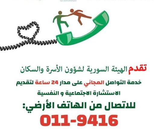 تقدم الهيئة السورية لشؤون الأسرة والسكان بالتعاون مع صندوق الأمم المتحدة للسكان وجمعية تنظيم الأسرة خدمة التواصل عبر الرقم المجاني