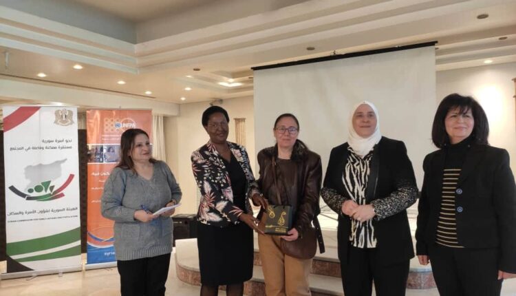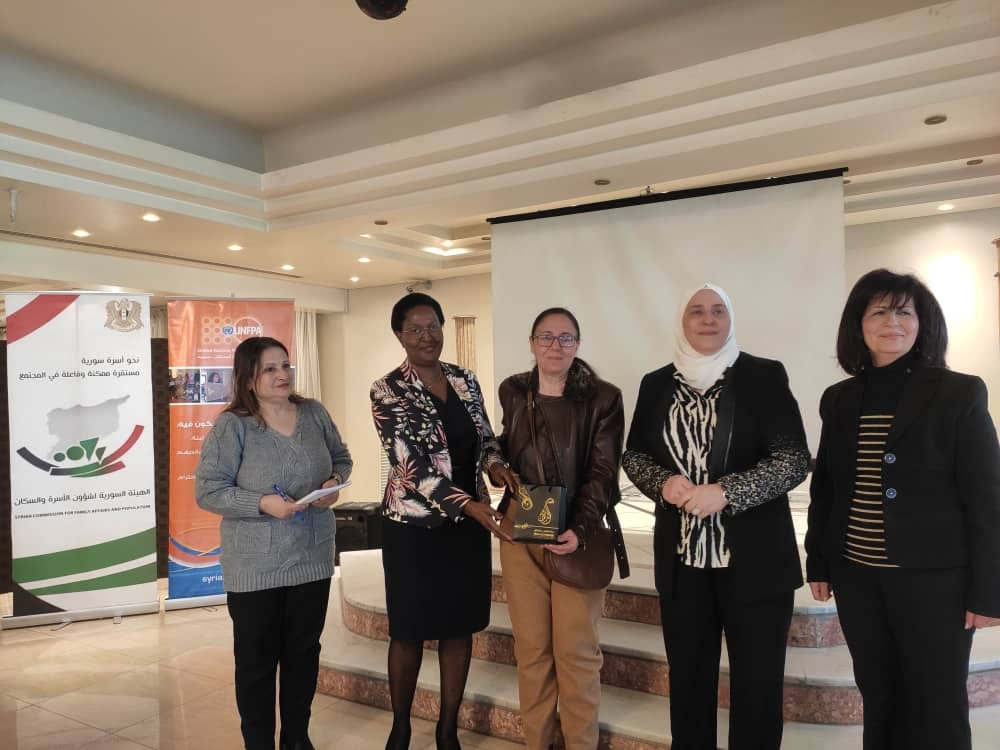 السيدة مورييل مافيكو ممثل صندوق الأمم المتحدة للسكان في سورية شاركت ختام أعمال ورشة /تمكين المرأة لمستقبل أفضل / و تمنت للمشاركات ولأسرهن الاستقرار و النجاح وإنجاز كل ما يطمحن له معتبرةً أن تطوير المجتمع يكون من خلال الاستثمار في المرأة وإبراز دورها . ودعت إلى الاستفادة من قصص وتجارب النساء المنتجات والتعلم منها ، وأثنت على معروضات النساء المشاركات في الورشة المشغولة بدقة واحترافية.المهندسة سمر السباعي شكرت لها حضورها والتعاون القائم بين المنظمة والهيئة في عدة مجالات دعماً للمرأة وحماية أسرتها وختمت بالقول أن ( المرأة حامية لأسرتها ومحمية بها) وبقدر ما تكون قوية متمكنة تكون أسرتها كذلك فلن تنشئ امرأة ضعيفة نشئاً قويا مهما كانت صلتها به .وفي ختام الورشة كرمت المهندسة سمر السباعي رئيسة الهيئة السورية لشؤون الأسرة والسكان عدد من السيدات المشاركات نموذجا للمرأة المنتجة والفاعلة ونوهت أن جميعهن مستحقات ويليق بهن التكريم .#يوم_المرأة_العالمي#المرأة_السورية#الهيئة_السورية_لشؤون_الأسرة_والسكان